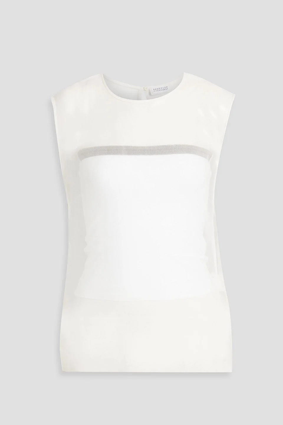 Top silk-organza bead embellishment button-fastening keyhole at back detachable lining lightweight, non-stretchy sheer fabric dry clean made in italy Elevate your wardrobe with Brunello Cucinelli’s stunning top. Made from silk organza with exquisite bead embellishments, it’s lightweight and sheer for a dreamy look. Just add tailored pants and heels for a chic evening out. 100% Silk Product Code 46376663162843699