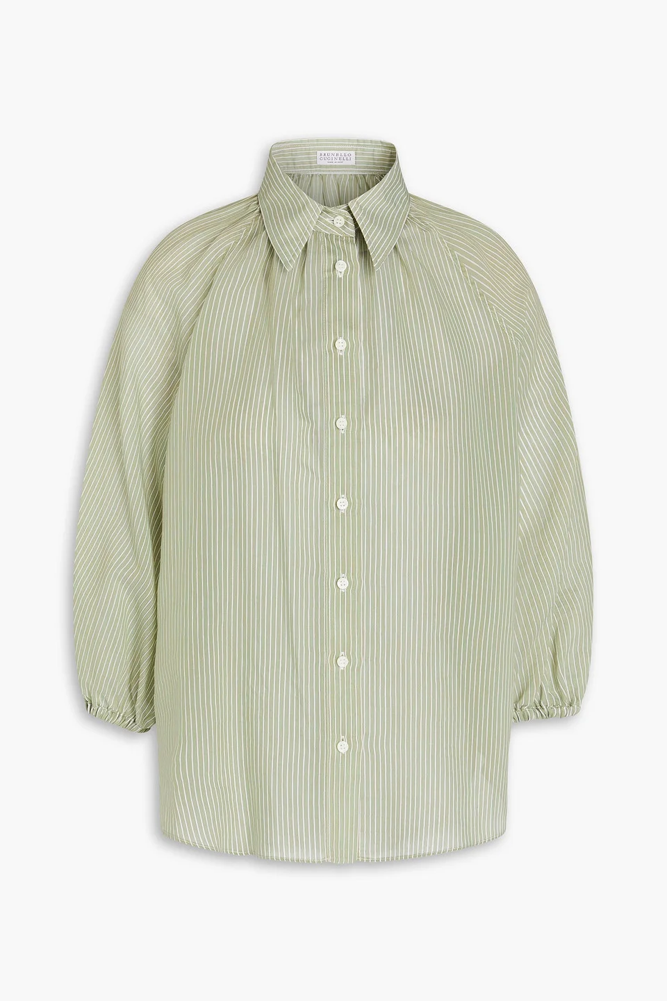 Shirt striped cotton and silk-blend gathered mother-of-pearl buttons bead embellishment elasticated cuffs button fastenings through front lightweight, non-stretchy fabric hand wash or dry clean made in italy 74% Cotton 26% Silk 0% Mother-of-pearl Product Code 1647597336847088