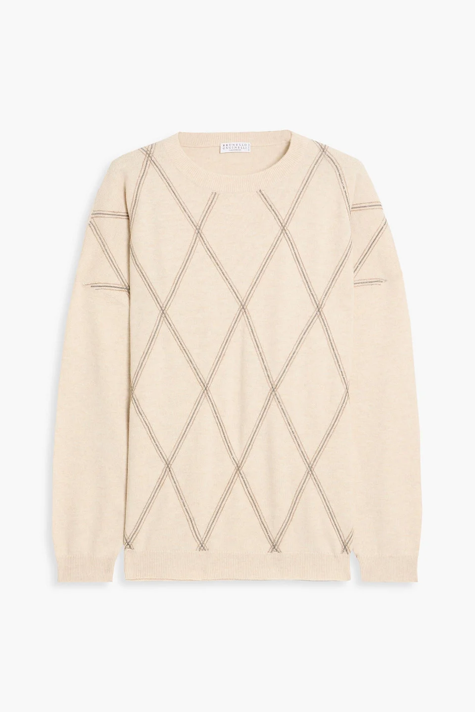 Virgin wool, cashmere and silk sweater with shiny argyle embroidery