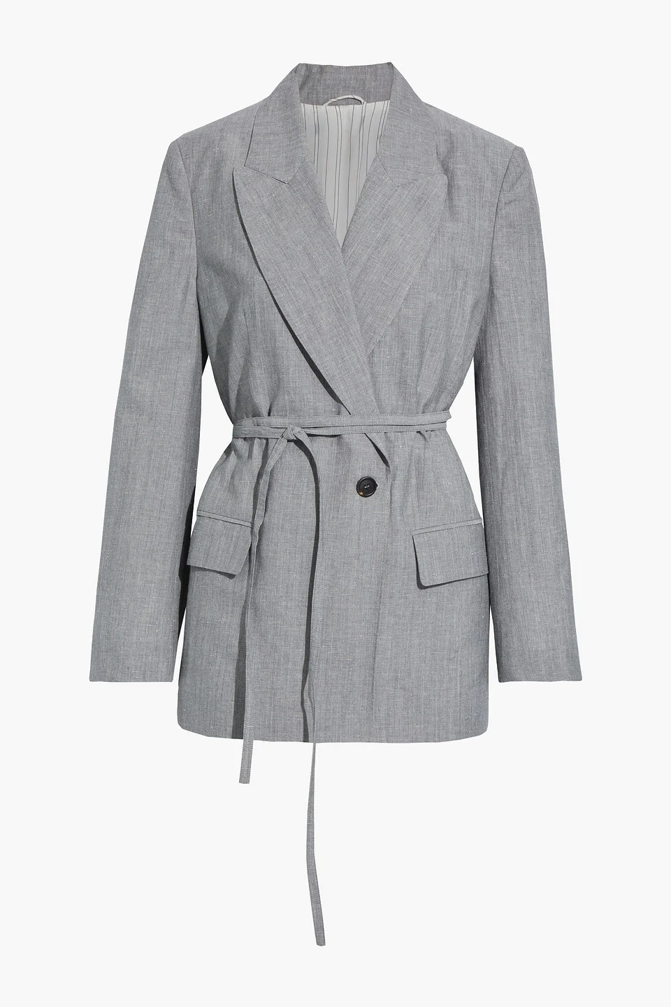 Belted slub wool and silk-blend blazer