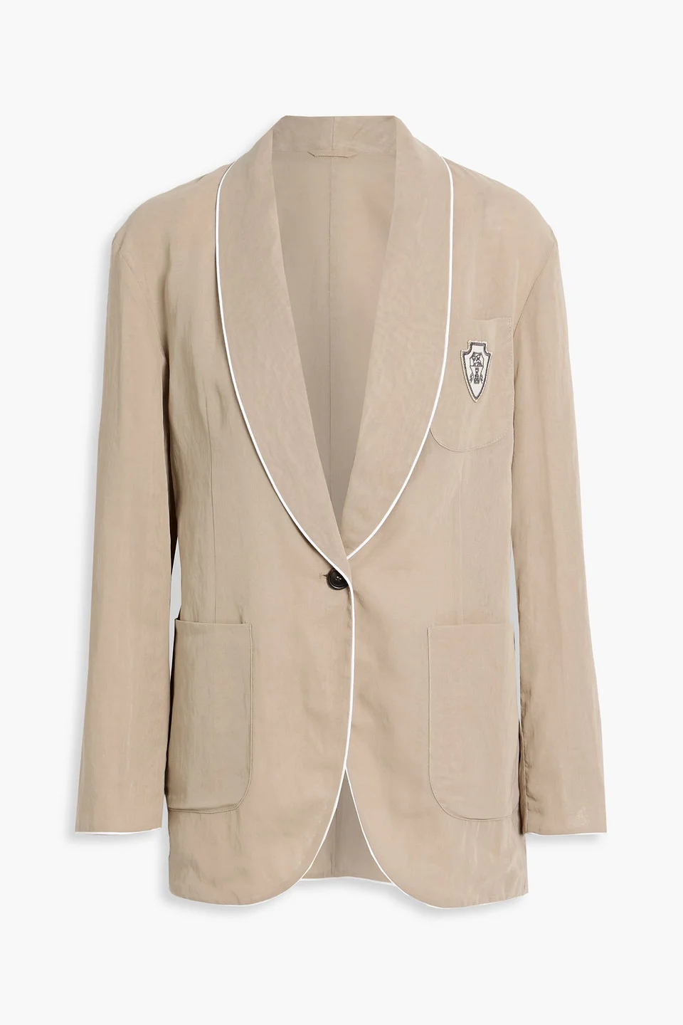 Blazer cotton organza appliqued buttoned cuffs breast pocket front patch pockets button fastening at front mid-weight, non-stretchy fabric dry clean made in italy Brunello Cucinelli's blazer is pure modern luxury. Made from cotton-organza, it's expertly tailored for a refined look that catches the eye. Spot-on for client catch-ups or in-office days, style with pared-back separates and let it take center stage. 100% Cotton Product Code 46376663163113813