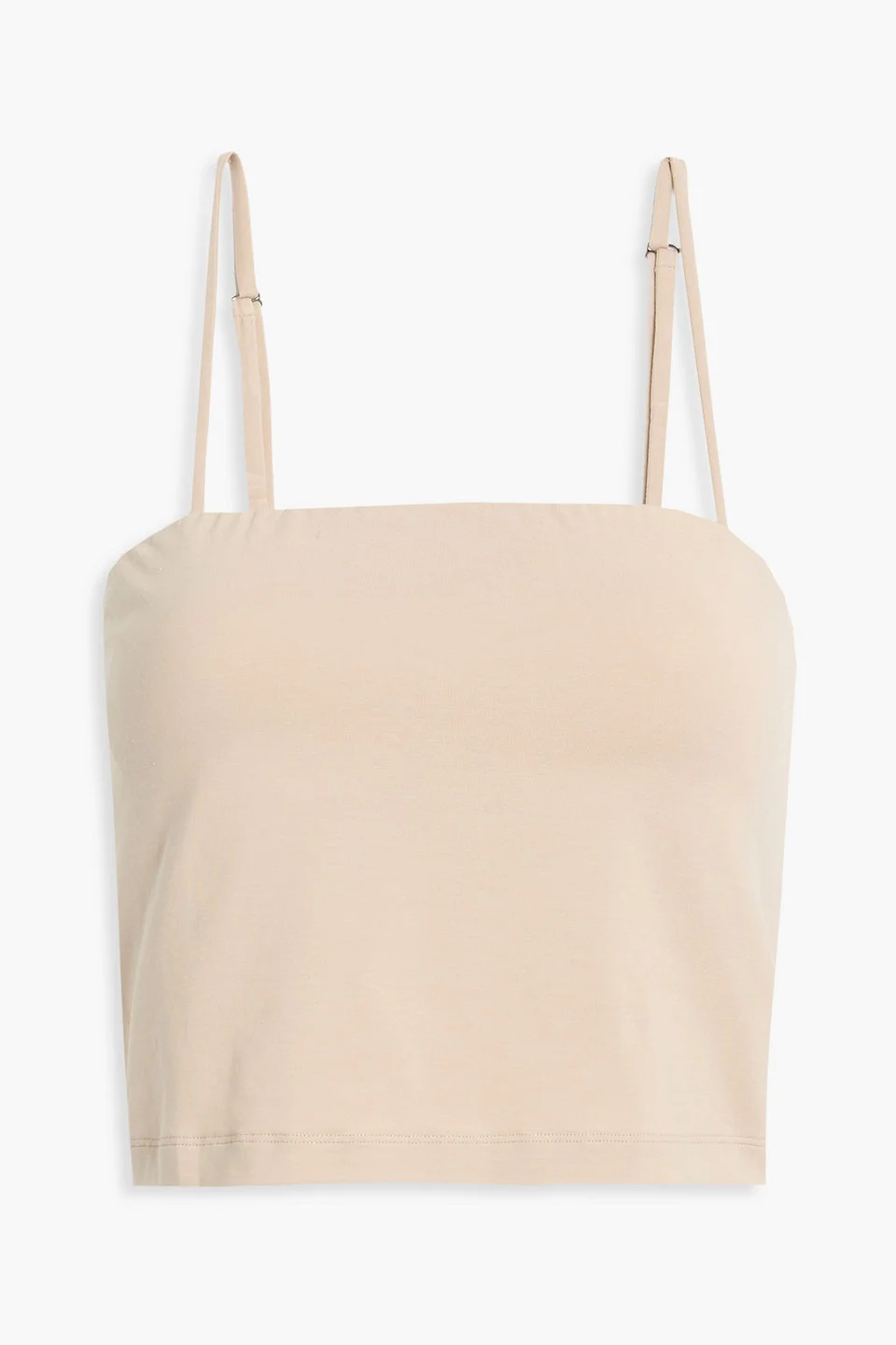 Bustier top cotton-blend jersey cropped adjustable straps slips on built-in shelf bra mid-weight, stretchy fabric hand wash or dry clean made in italy Brunello Cucinelli's beige top will be one of the hardest working pieces in your wardrobe, we like it with tailoring and after-dark skirts just as much. It's made from cotton-blend jersey with a cropped length and fuss-free shelf bra. 93% Cotton 7% Elastane Product Code 46376663163113878