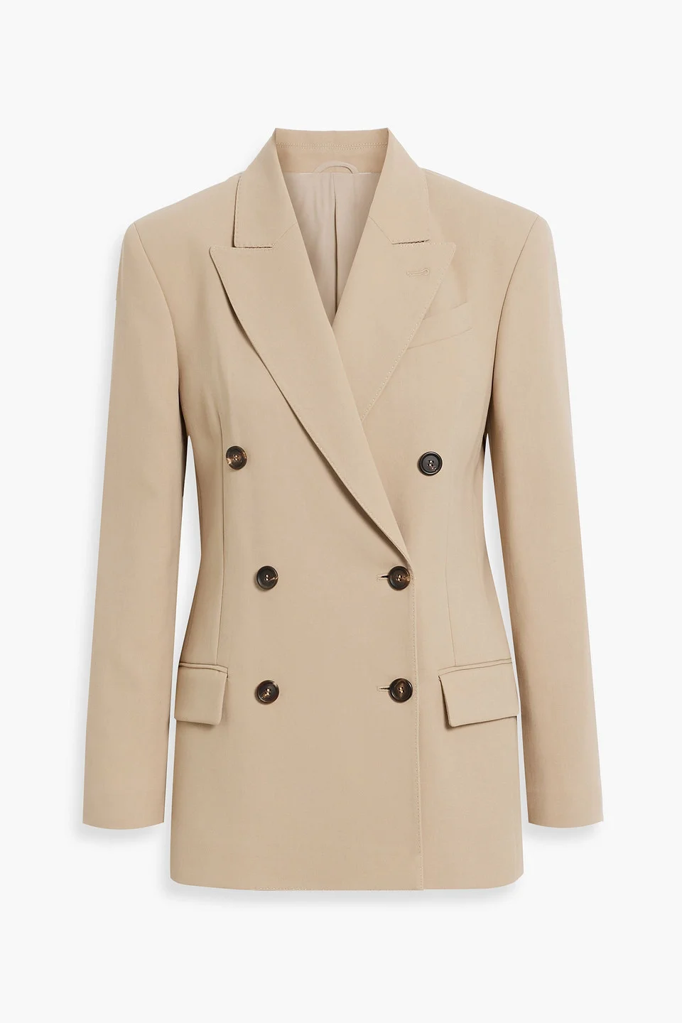 Blazer cotton bead embellishment shoulder pads buttoned cuffs breast pocket two front flap pockets button fastenings through double-breasted front partially lined back vent mid-weight, non-stretchy fabric dry clean made in italy 100% Cotton Product Code 46376663162861696