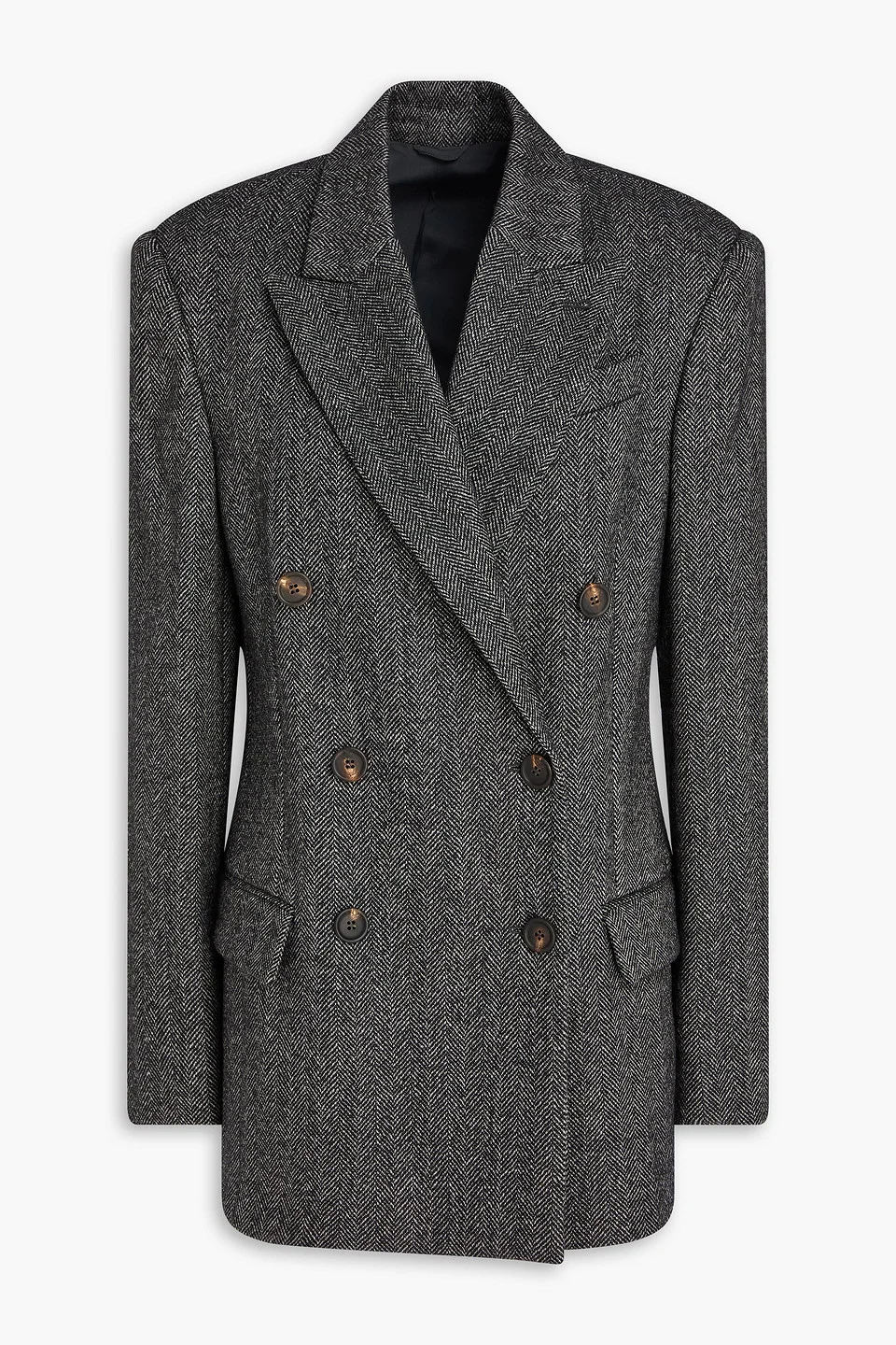 Double-breasted herringbone wool-blend blazer