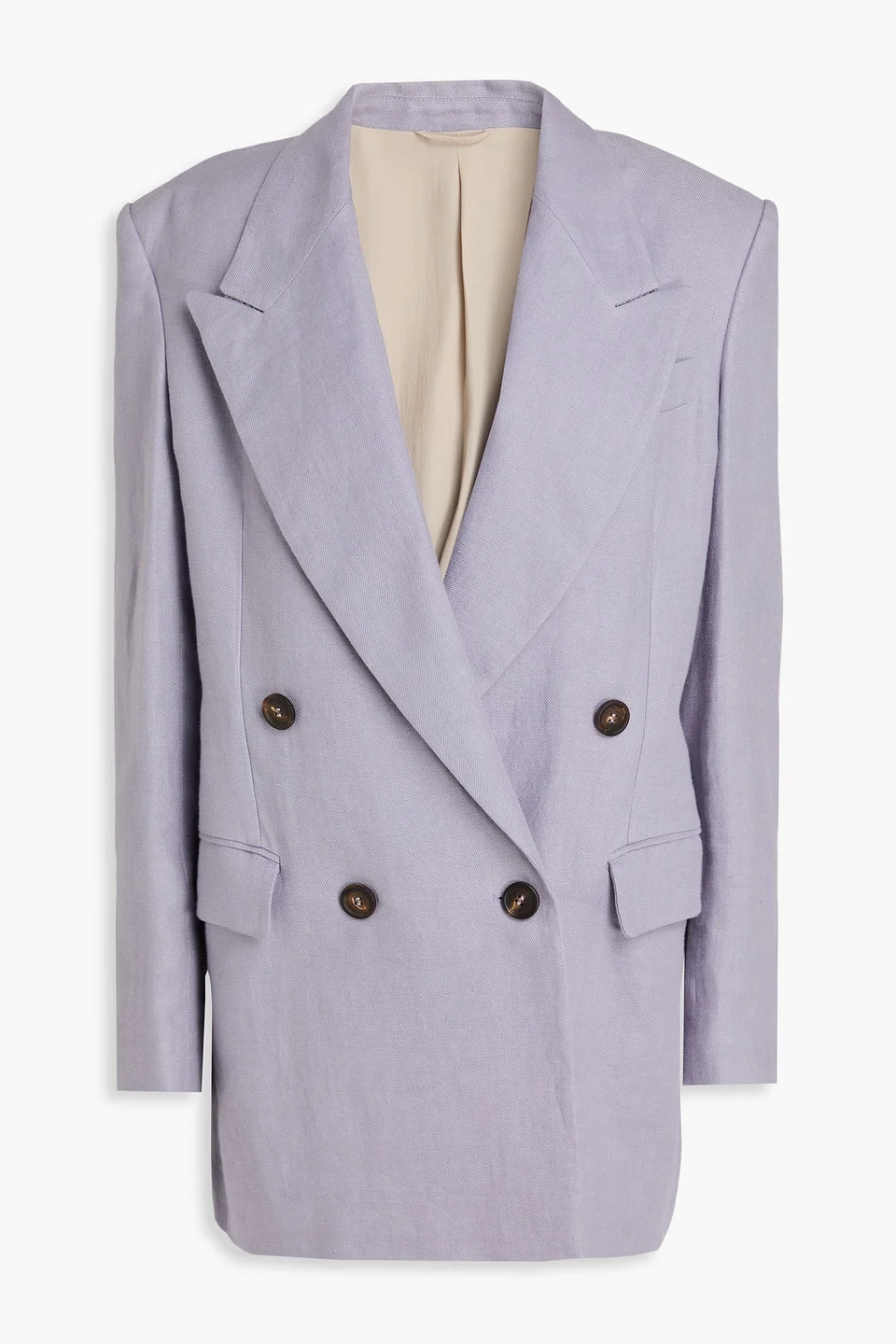 Blazer linen and hemp-blend horn buttons buttoned cuffs front flap pockets breast pocket button fastenings through double-breasted front dual back vents mid-weight, non-stretchy fabric dry clean made in italy 53% Hemp 47% Linen 0% Horn Bubalus Bubalis (farmed): India Product Code 46376663163063406