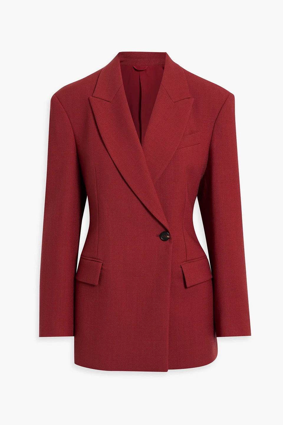 Blazer wool shoulder pads buttoned cuffs breast pocket front flap pockets button fastening at double-breasted front fully lined back vent mid-weight, non-stretchy fabric dry clean made in italy 100% Virgin Wool Product Code 46376663162949037