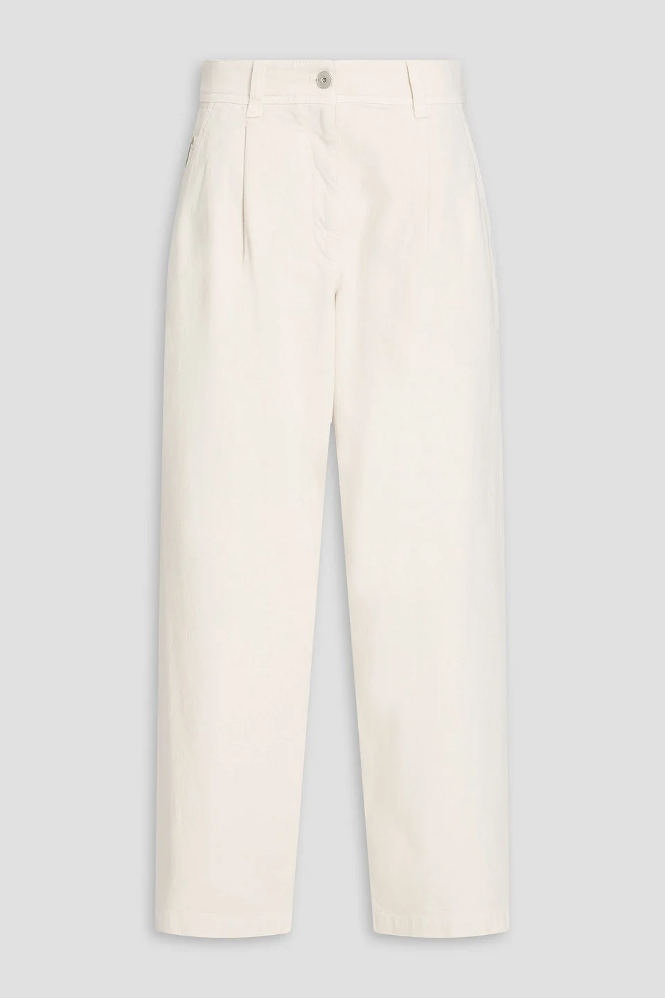 Wide-leg jeans denim bead embellishment pleated high-rise cut side slant pockets back patch pockets button and concealed zip fastening at front mid-weight, slightly stretchy fabric machine wash made in italy Looking for a really great pair of jeans? Brunello Cucinelli's wide-leg iteration have a high-rise cut and bead embellishments, making them a stylish choice. Just add a fitted top and you're ready to shine. 99% Cotton 1% Elastane Product Code 46376663162936054