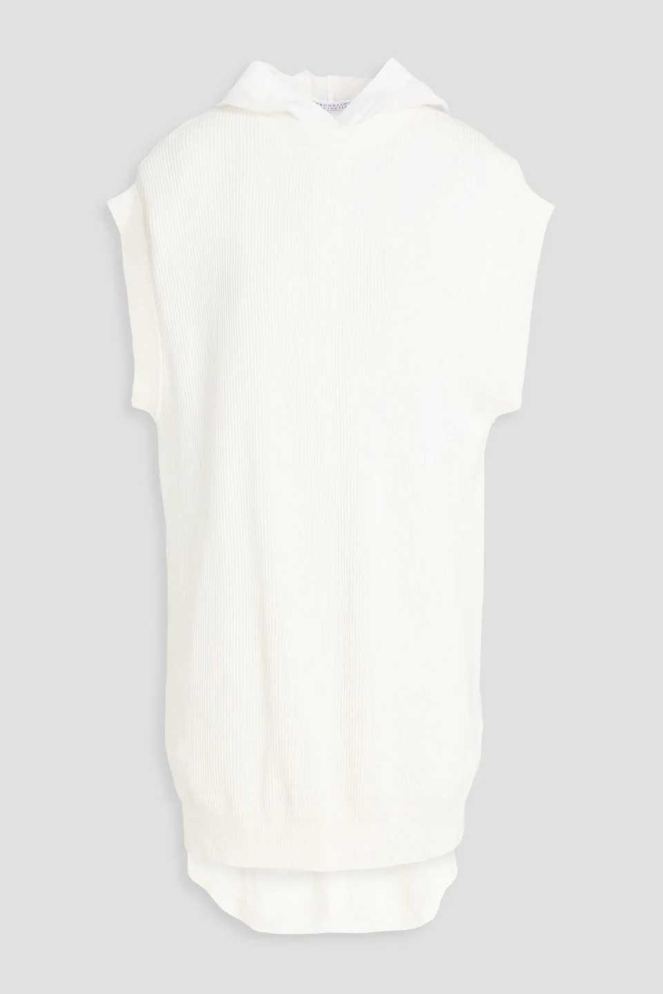 Dress organza cotton ribbed bead embellishment mother-of-pearl buttons layered hooded concealed button fastenings through front mid-weight knit hand wash or dry clean made in italy This organza-paneled dress from Brunello Cucinelli is a total dream. The ribbed cotton contours the body while layered organza panels add fluid movement. Ideal for special days; finish with sleek mules or satin flats. 100% Cotton 0% Trochus Niloticus (wild): Indonesia Product Code 46376663163062384