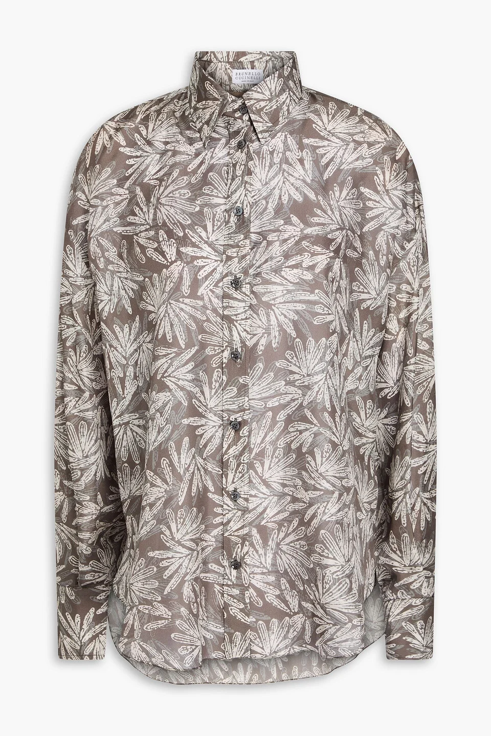 Shirt printed silk-habotai mother-of-pearl buttons bead embellishment pleated back buttoned cuffs button fastenings through front lightweight, non-stretchy fabric dry clean made in italy Brunello Cucinelli’s printed silk-habotai shirt is a must-have for your wardrobe. It has subtle bead embellishments and a pleated back that adds a touch of elegance. Just add tailored pants and heels for a polished look. 100% Silk Product Code 46376663162935964