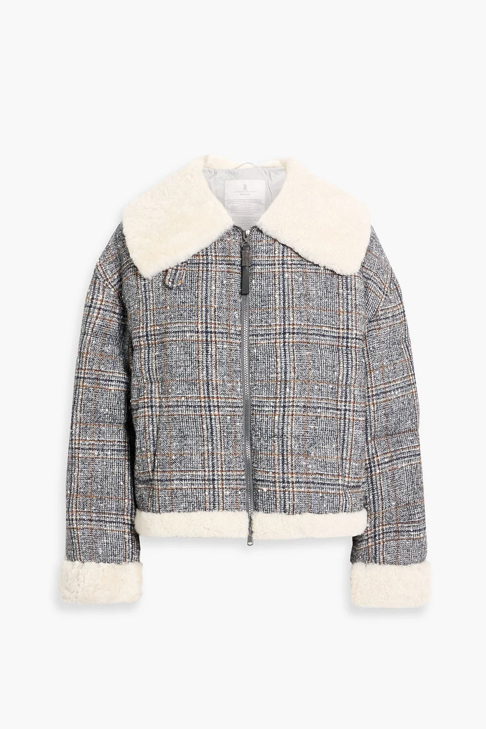 Jacket checked quilted wool-blend tweed bead embellishment shearling trim front welt pockets buckle fastening at neck two-way zip fastening through front goose down and feather filling fully lined mid-weight, non-stretchy fabric dry clean made in italy 63% Wool 25% Alpaca wool 12% Polyamide Product Code 46376663163049073