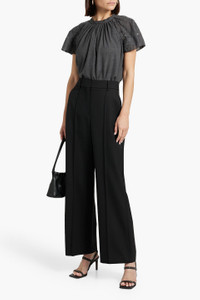 Sequin-embellished broderie anglaise-trimmed wool top
