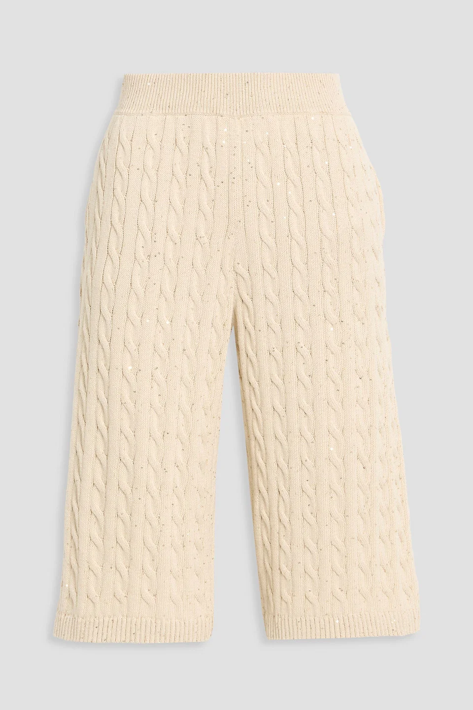 Sequin-embellished Cable-knit Cotton-blend Shorts