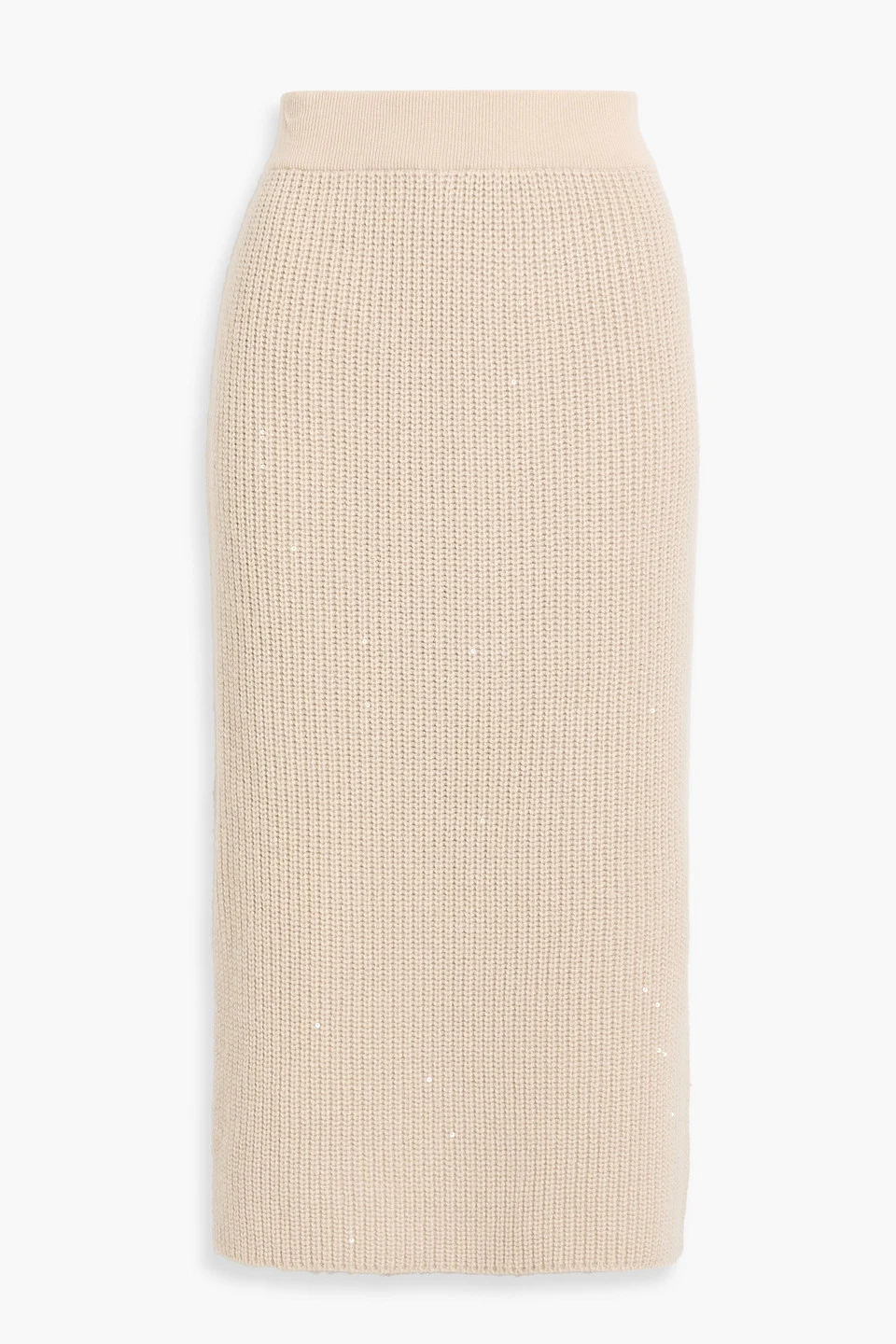 Skirt cashmere and silk-blend sequins elasticated waist side slit hemline slips on mid-weight knit dry clean made in italy Looking after your cashmere is as easy as 1-2-3. Our cashmere care guide lays out three easy steps to wash your favorite pieces like a pro 84% Cashmere 16% Silk Product Code 46376663163056905
