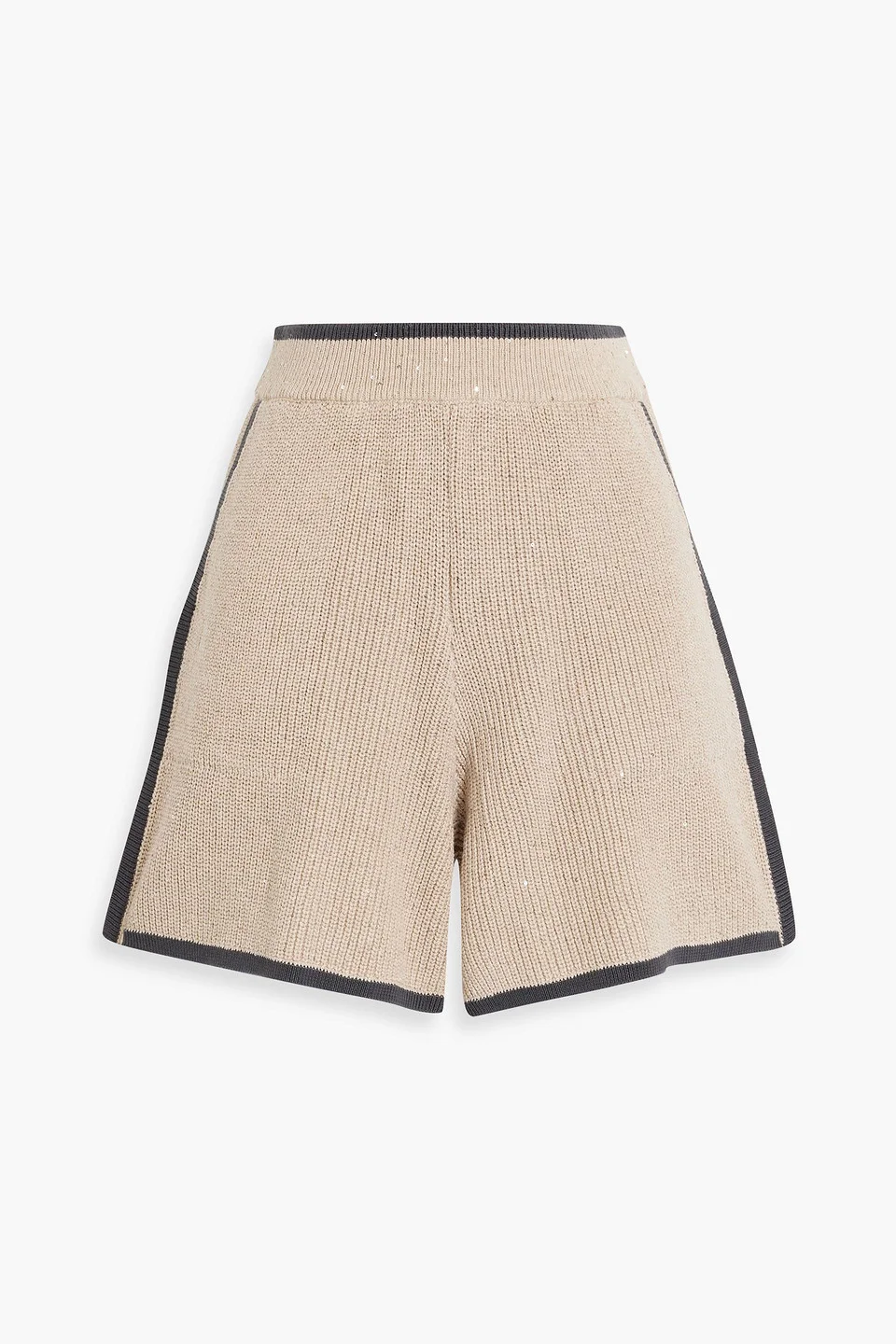 Shorts cotton-blend sequins ribbed trims elasticated waist high-rise cut two front slant pockets faux pocket pull on mid-weight knit hand wash or dry clean made in italy 96% Cotton 4% Polyester Product Code 46376663162861680