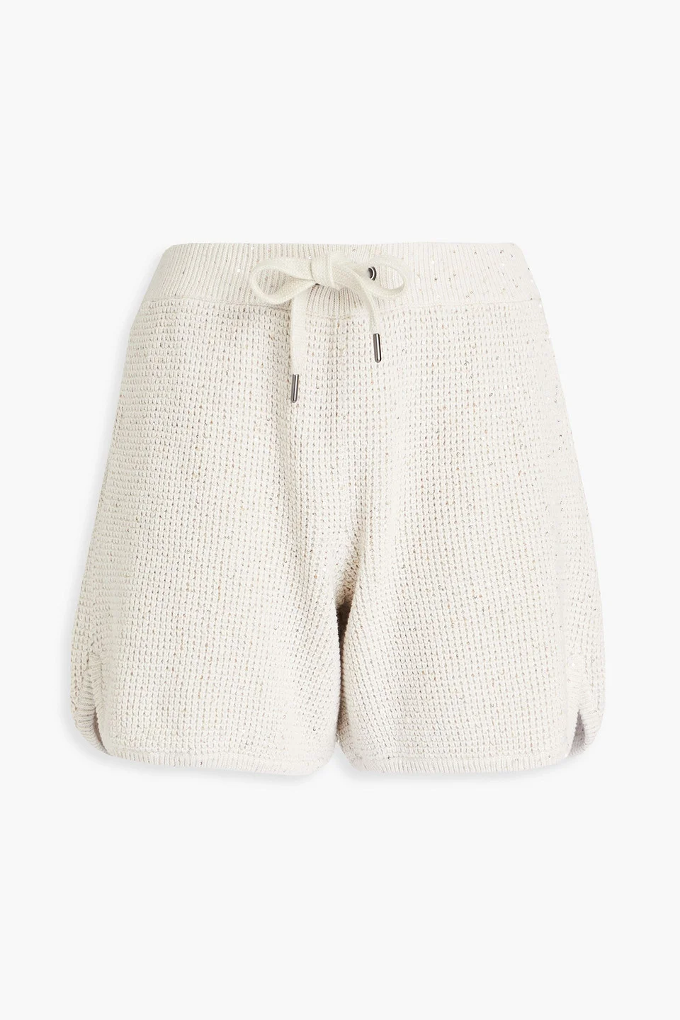 Sequin-embellished waffle-knit cotton-blend shorts