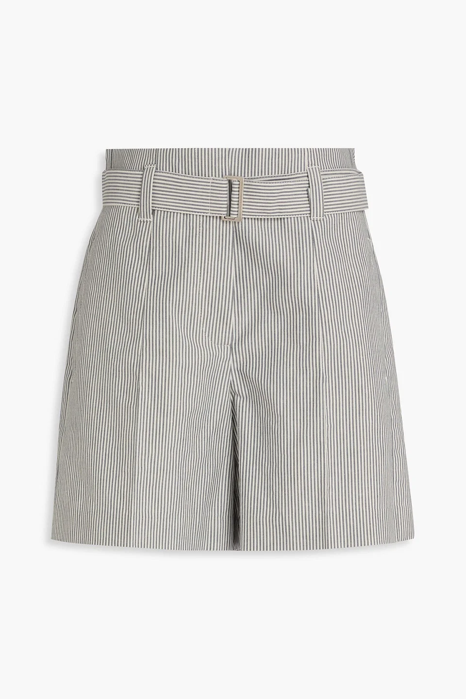Shorts striped twill cotton and linen-blend bead embellishment belt loops high-rise cut detachable belt side slit pockets back welt pockets mid-weight, non-stretchy fabric dry clean imported 71% Cotton 29% Linen Product Code 46376663163063745