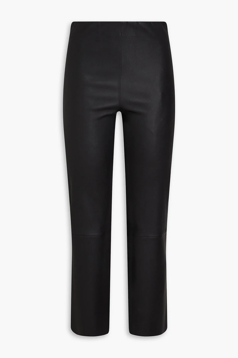 Slim-leg pants stretch-leather cropped elasticated waistband mid-rise cut unfinished cuffs pull on supple, stretchy leather specialist clean imported 100% Lambskin Product Code 1647597351977158