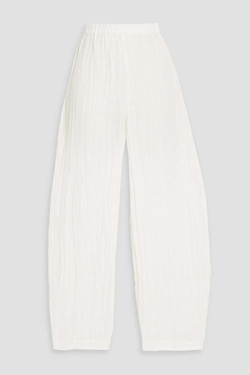 Tapered pants linen-gauze elasticated waist high-rise cut pull on lightweight, non-stretchy fabric dry clean imported 100% Linen Product Code 1647597333572664