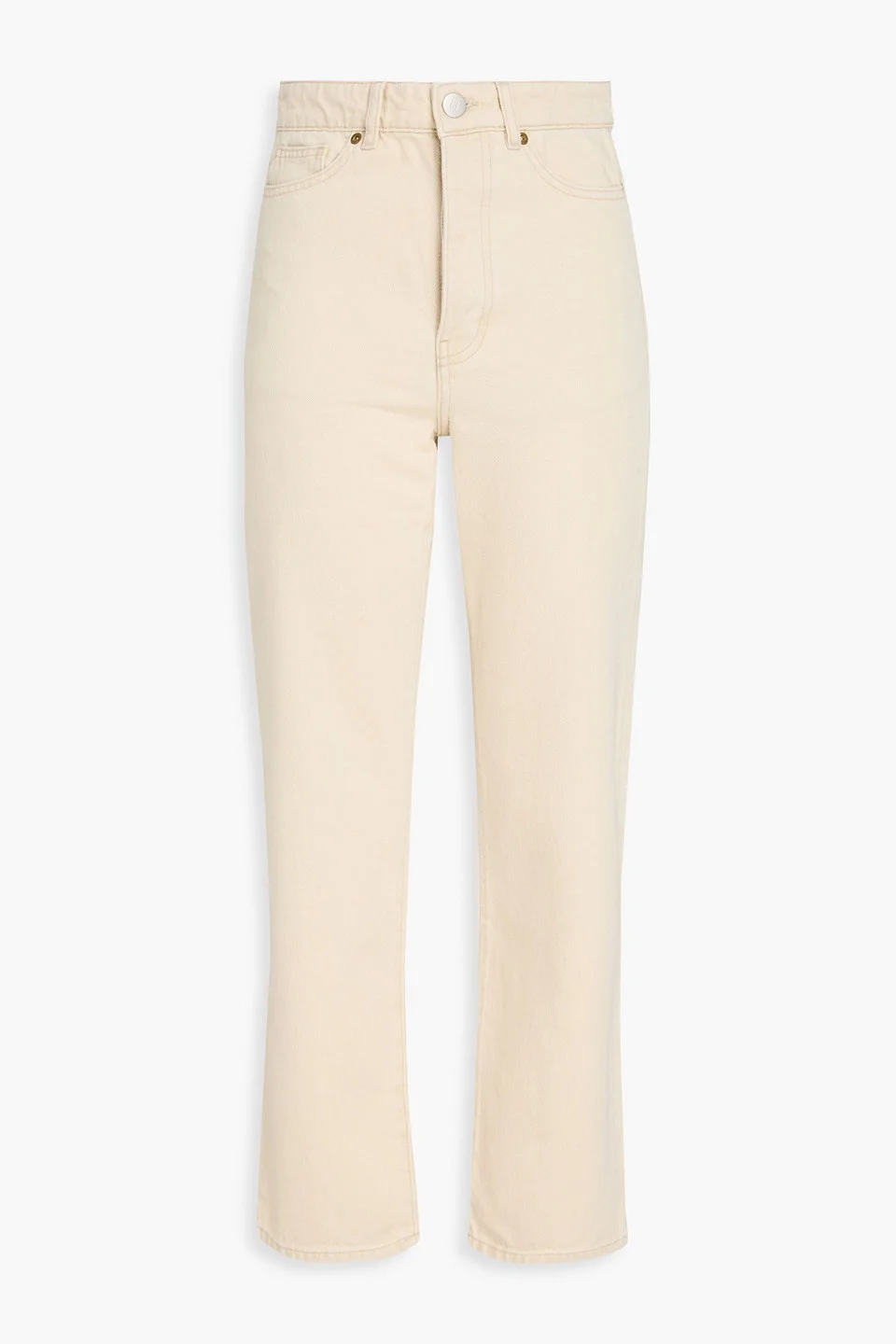 Straight-leg jeans denim belt loops high-rise cut five pockets partially concealed button fastenings along front mid-weight, non-stretchy fabric machine wash or dry clean imported 100% Cotton Product Code 1647597359543524
