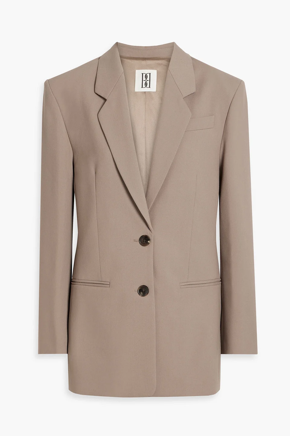 Blazer crepe shoulder pads buttoned cuffs breast pocket two front welt pockets button fastenings through front fully lined dual back vents mid-weight, slightly stretchy fabric dry clean imported 69% Polyester 30% EcoVero™ Viscose 1% Elastane Product Code 46376663162902102