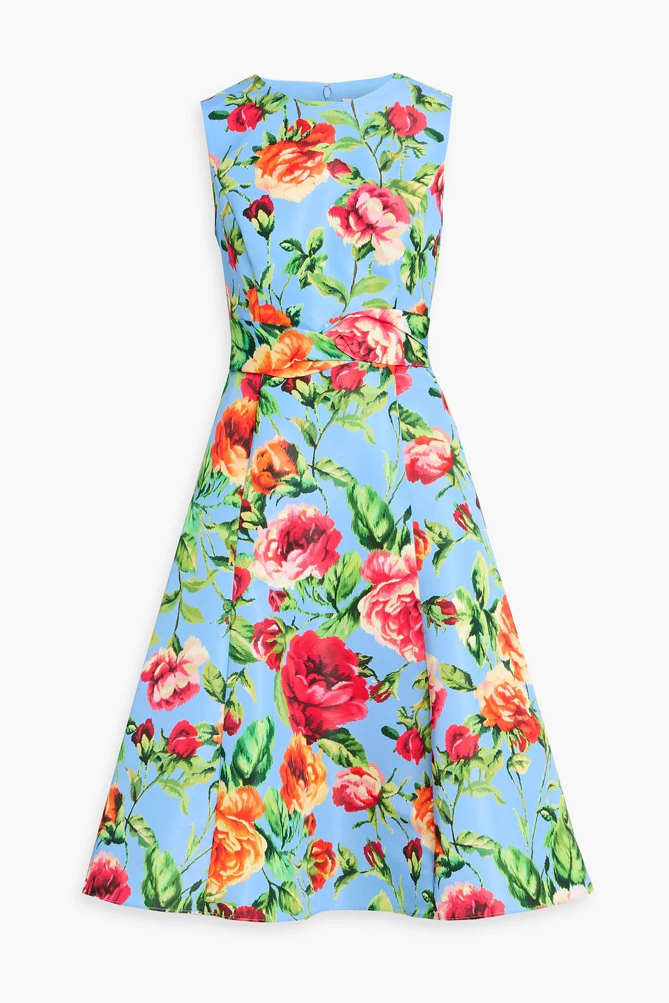 Dress floral-print faille concealed hook and zip fastening at back partially lined mid-weight, non-stretchy fabric dry clean made in italy Carolina Herrera’s floral-print midi is pure joy. Set against a sky-blue backdrop, the bold blooms make an instant statement while the fit-and-flare silhouette flatters with ease. Just add strappy heels and let the dress do the rest. 100% Polyester Product Code 46376663163005687
