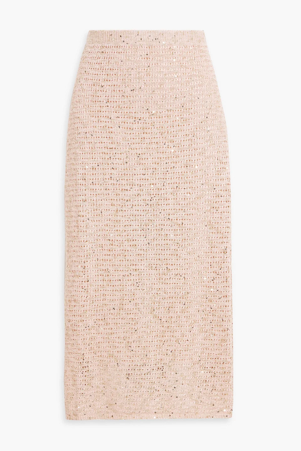 Metallic embellished pointelle-knit cotton-blend midi skirt