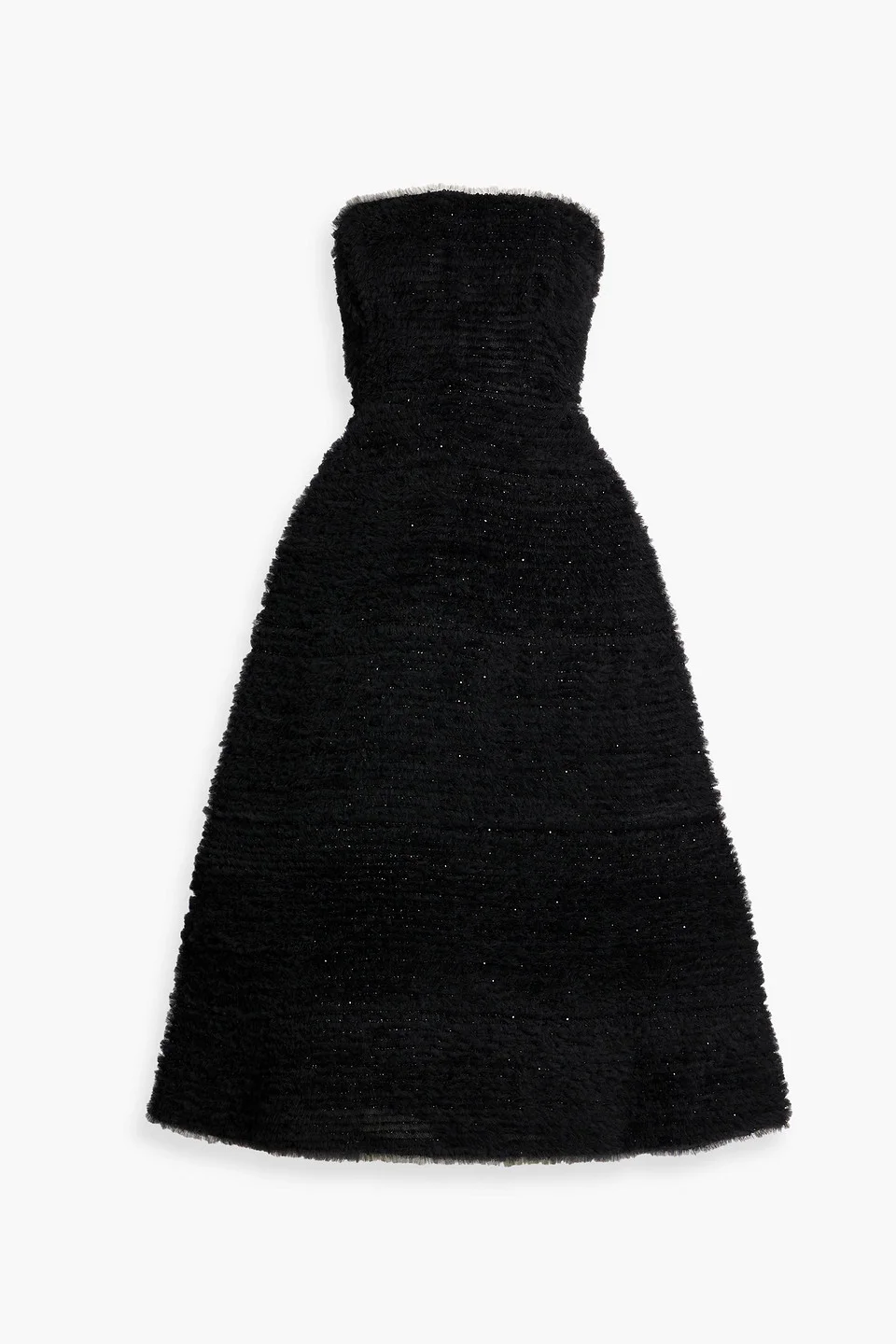 Strapless bead-embellished ruffled tulle midi dress