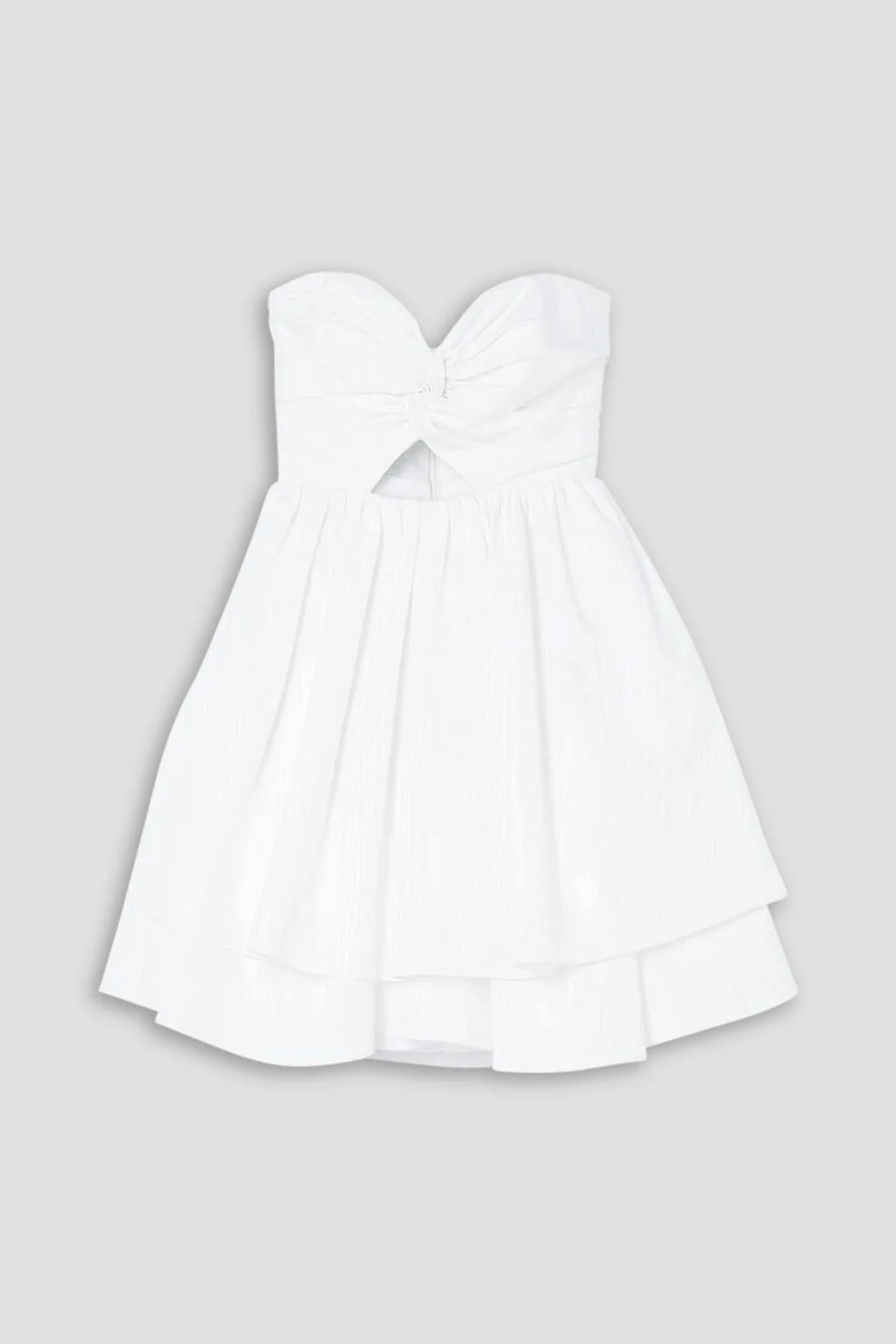 Strapless dress moire taffeta tiered ruffled cutout concealed hook and zip fastening at back internal boning mid-weight, non-stretchy fabric dry clean One of the most distinguished designers, Carolina Herrera allows any bride to "feel confident, modern and above all else beautiful". The label's bridalwear launched in 1987 and has embodied this spirit ever since. Cut from moire-taffeta, this strapless mini dress is tiered in two cascading layers of ruffles and has a sweetheart neckline and cutout bodice. Slip on your first-dance stilettos and love every moment. 52% Acetate 48% Cotton Product Code 1647597285211123