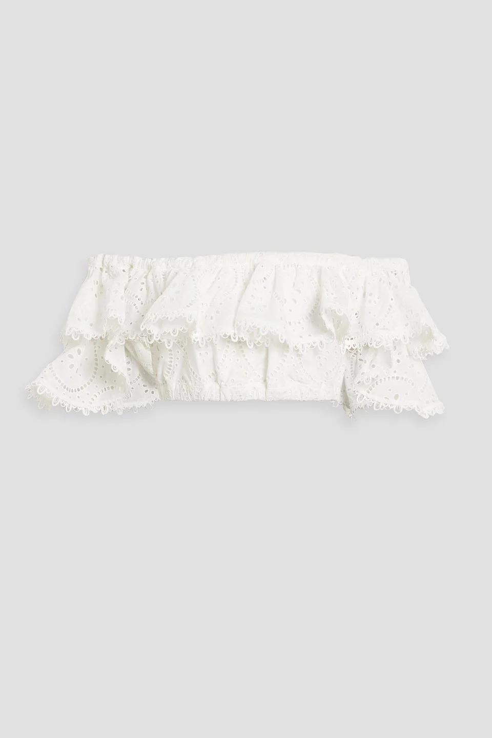 Aquila off-the-shoulder cropped ruffled broderie anglaise cotton-blend top