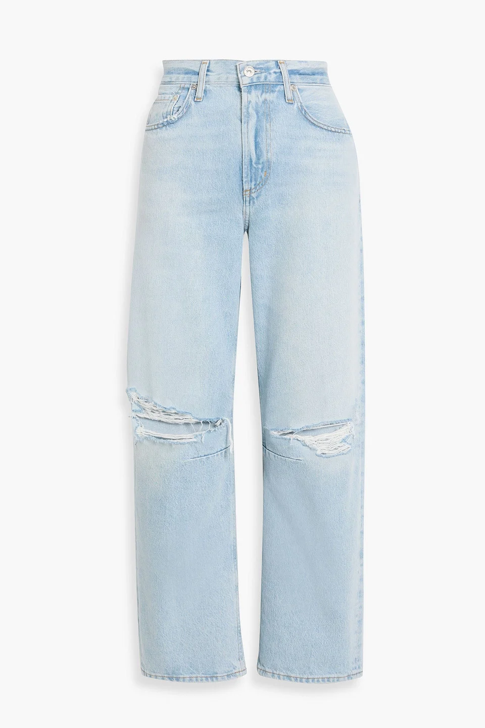 Miro distressed high-rise barrel-leg jeans