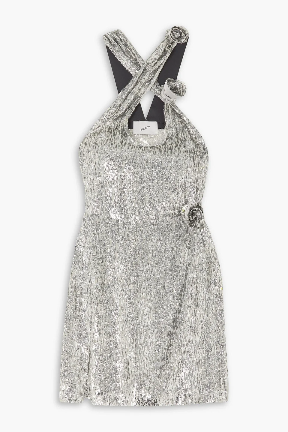 Dress metallic fil coupe voile floral appliques front slit concealed button fastenings along side lightweight, non-stretchy sheer fabric dry clean imported Light up the dance floor in this party-perfect mini dress from Coperni. The sparkling fil coupe voile is cut to hug your figure and appliqued with flowers which you can position where you fancy to highlight the plunging crossover neckline. Style yours with thigh-high boots and bold lipstick. 72% Metallic Polyester (Mp) 28% Silk Product Code 1647597288240375