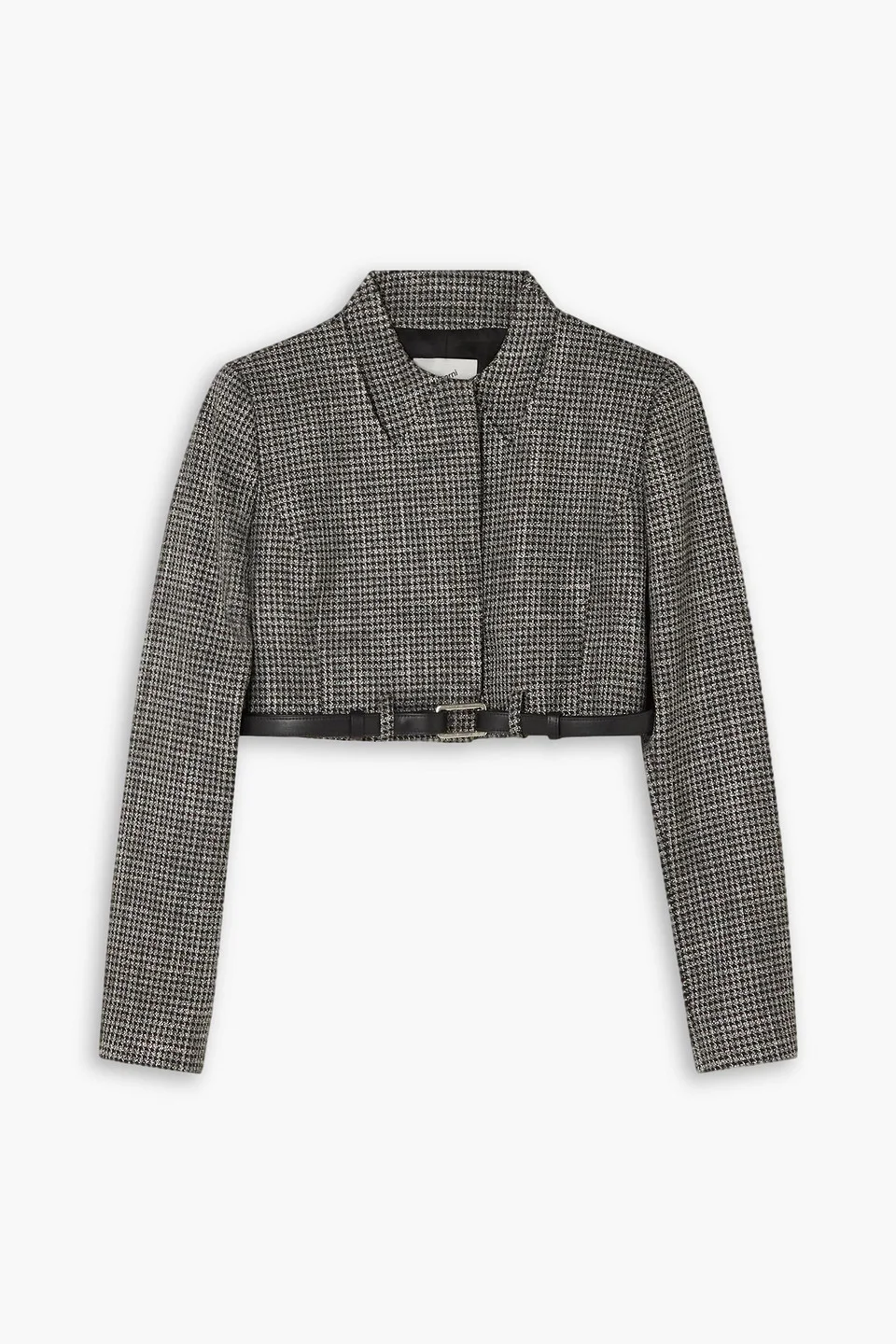 Jacket metallic checked tweed cropped shoulder pads belt loops detachable belt concealed snap fastenings through front fully lined mid-weight, non-stretchy fabric dry clean imported Coperni's cropped tweed jacket is woven with checks that resemble a houndstooth pattern from afar, the Parisian label likens the effect to trompe-l'œil . It's outlined with a belt-like leather harness to toughen it up. 61% Polyester 34% Viscose 3% Elastane 2% Metallic fiber Product Code 1647597288240371
