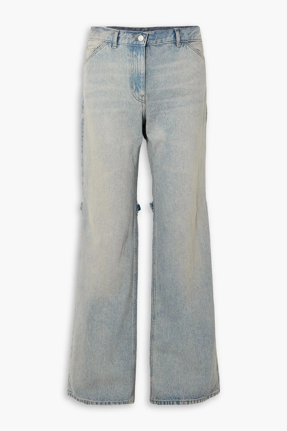 Wide-leg jeans denim detachable straps high-rise cut front slant pockets back patch pockets button and concealed zip fastening at front mid-weight, non-stretchy fabric hand wash or dry clean imported 100% Cotton Product Code 46376663163077299