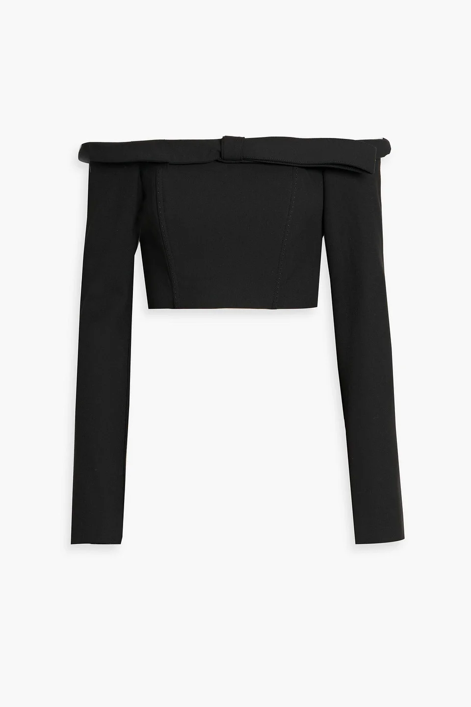 Off-the-shoulder top crepe cropped zip fastening through back mid-weight, slightly stretchy fabric dry clean imported 61% Polyester 27% Viscose 12% Elastane Product Code 46376663163077023