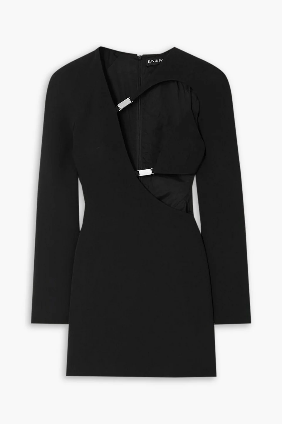 Dress crepe embellished cutout concealed hook and zip fastening at back fully lined mid-weight, non-stretchy fabric dry clean made in uk David Koma's ultra-luxe dresses are usually on the red carpet, but this season, they might be better suited to a football stadium. The designer became a British citizen this year and in homage to his new homeland, found inspiration in football culture. Styled on the runway with knee-high sports socks and cycling shorts, this jersey dress is accented with asymmetric cutouts and a triangle-bra underneath. 52% Acetate 45% Viscose 3% Elastane Product Code 1647597359144662