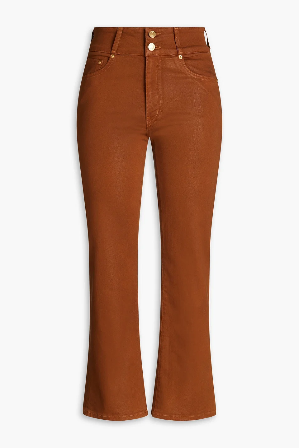 Kick-flare jeans denim coated cropped belt loops high-rise cut multipockets button and concealed zip fastenings at front mid-weight, slightly stretchy fabric machine wash 92% Cotton 6% Elastomultiester 2% Elastane Product Code 1647597349239750
