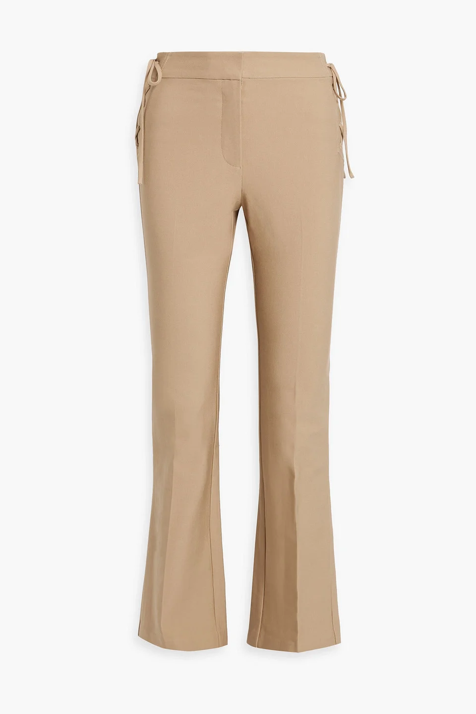Bootcut pants cotton-blend lace-up detailing pressed creases mid-rise cut concealed hook, button and zip fastening at front slightly stretchy fabric mid-weight fabric dry clean imported 57% Cotton 37% Viscose 6% Spandex Product Code 1647597307454911