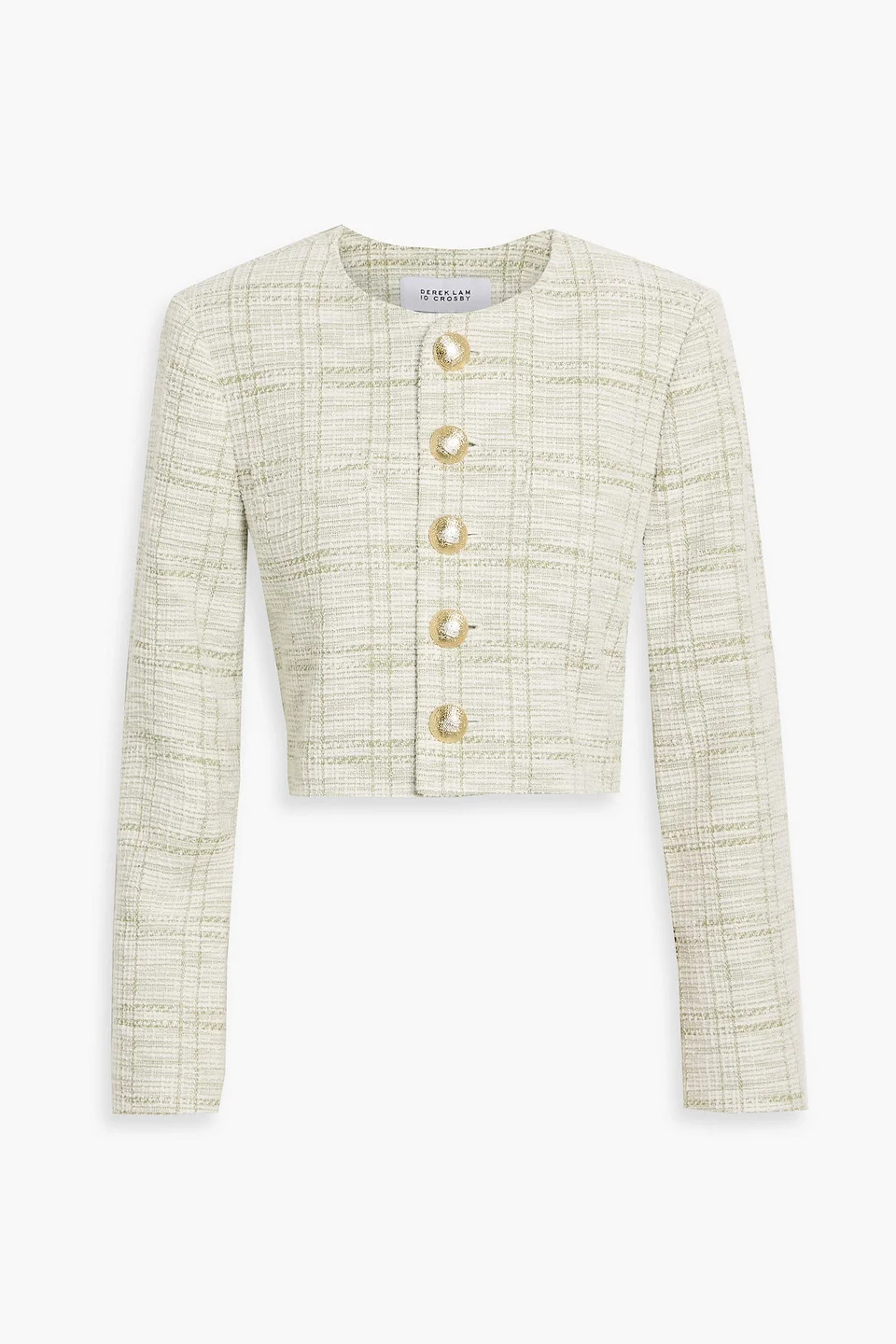 Jacket tweed cropped button fastenings through front fully lined mid-weight, non-stretchy fabric dry clean imported 57% Polyester 41% Cotton 2% Spandex Product Code 46376663163031117