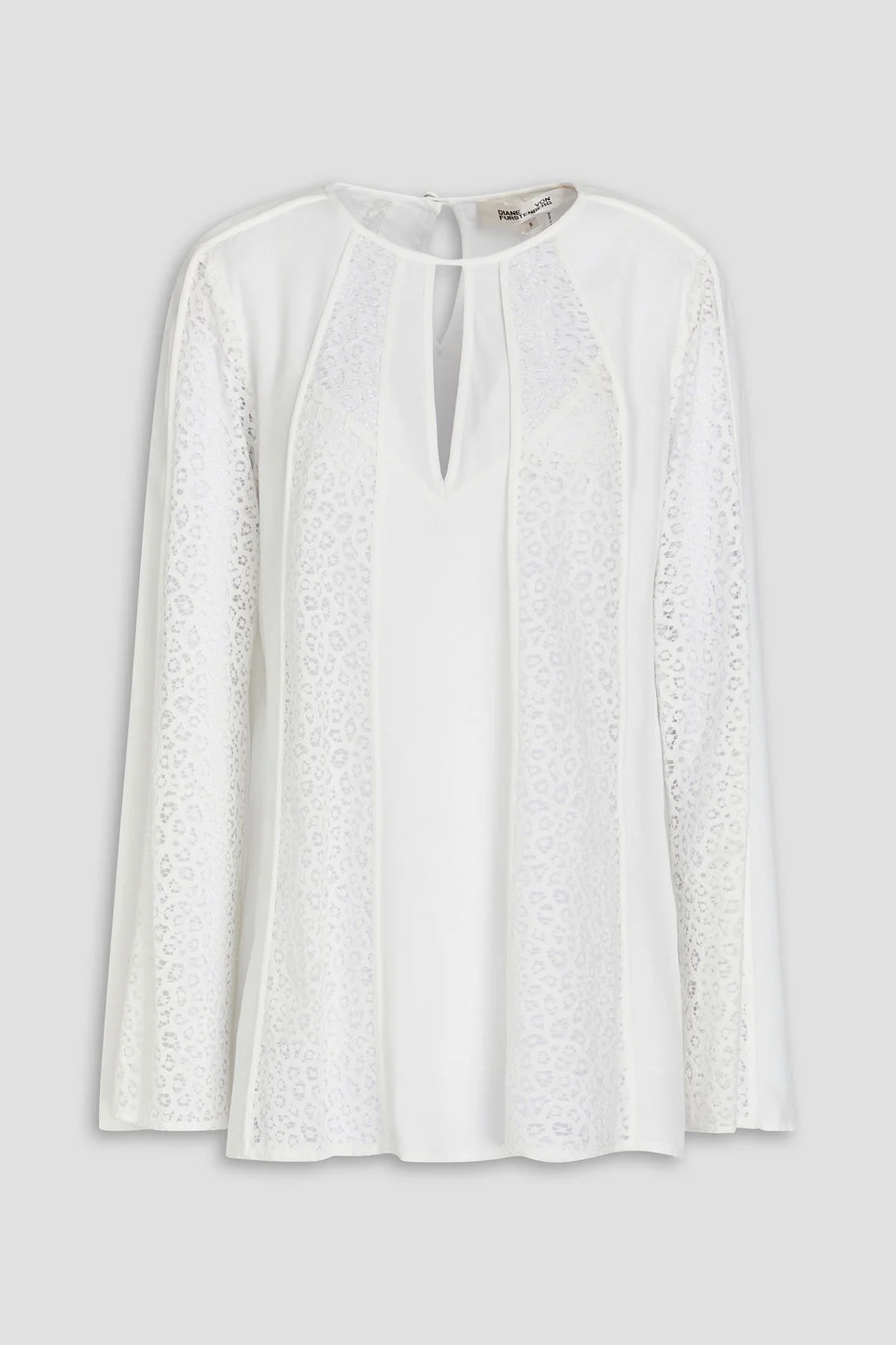 Blouse corded lace crepe paneled bell sleeves button-fastening keyhole at back detachable camisole to line lightweight, non-stretchy fabric dry clean imported 100% Viscose Product Code 1647597358590448