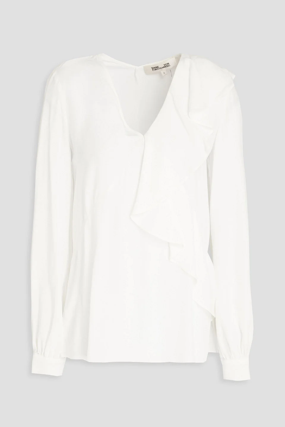 Top crepe de chine ruffled buttoned cuffs side slits slips on mid-weight, non-stretchy fabric dry clean imported 100% Viscose Product Code 1647597358885444