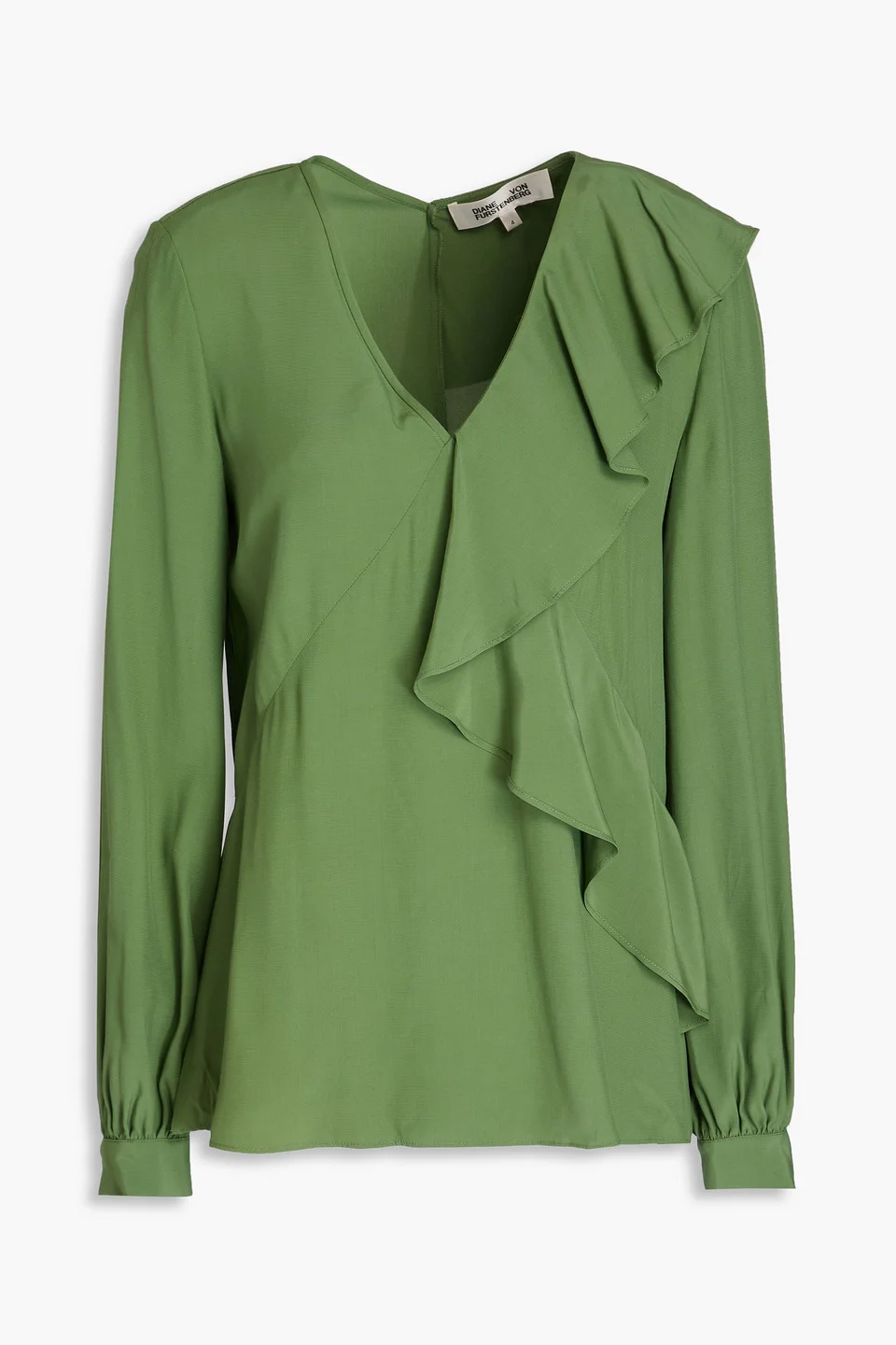 Top crepe de chine ruffled buttoned cuffs side slits slips on mid-weight, non-stretchy fabric dry clean imported 100% Viscose Product Code 1647597358883907