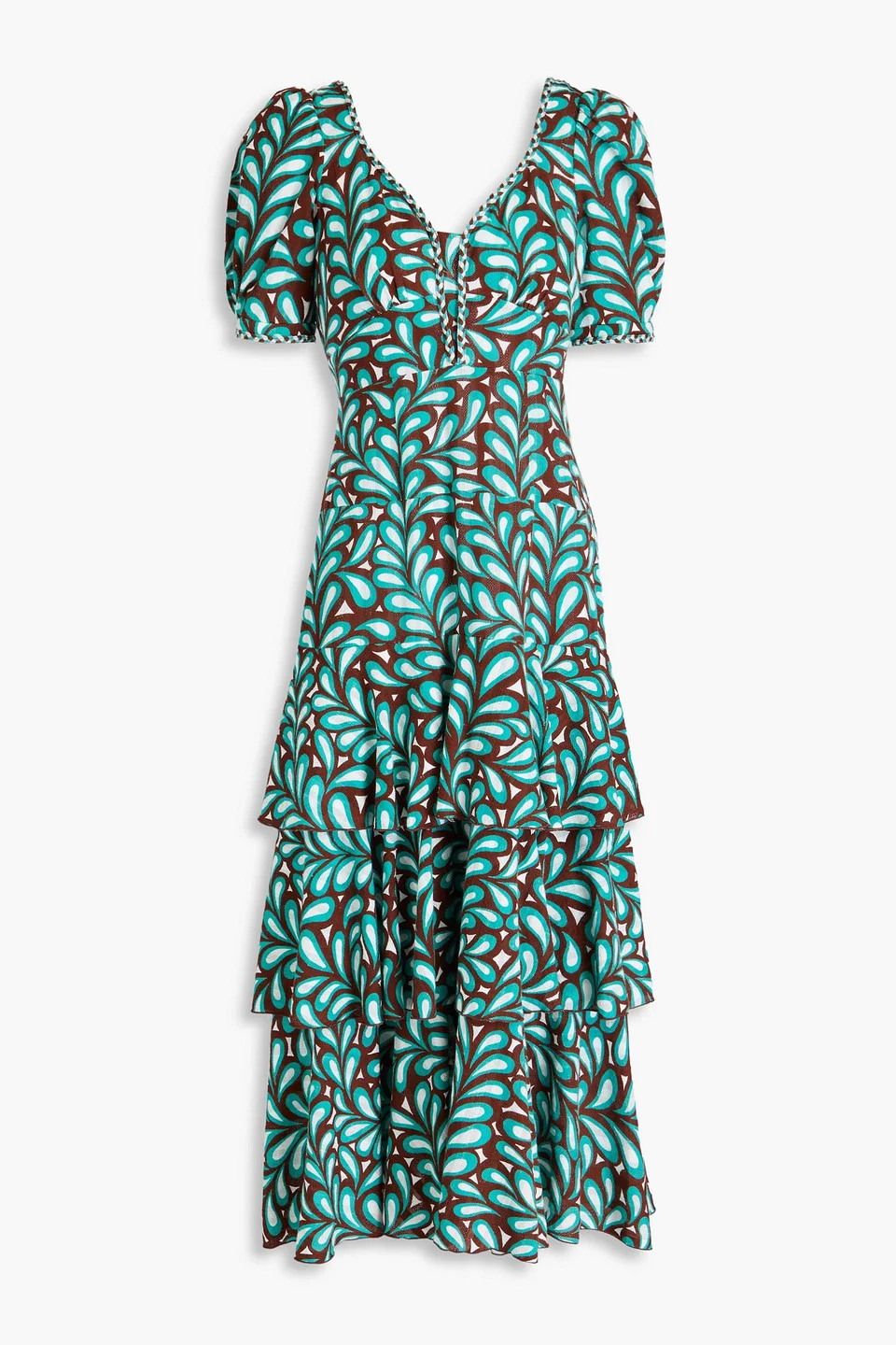 Dress printed cotton-jacquard braided trims tiered concealed hook and zip fastening at back mid-weight, non-stretchy fabric dry clean imported 100% Cotton Product Code 46376663162883161