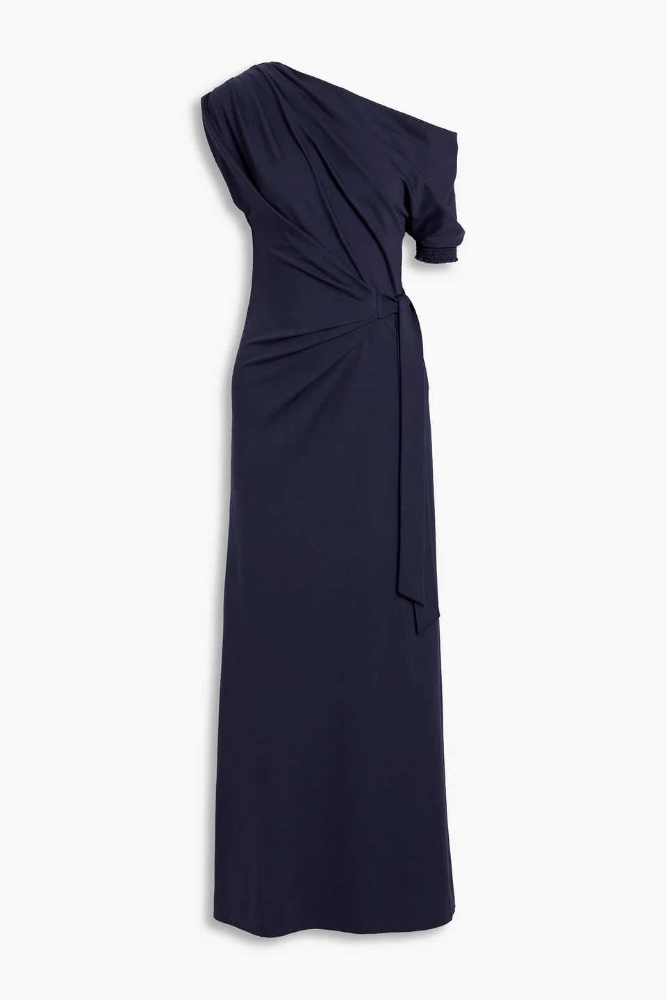One-shoulder dress stretch-jersey waist ties slips on mid-weight, stretchy fabric dry clean imported 61% Viscose 34% Nylon 5% Spandex Product Code 46376663163004406