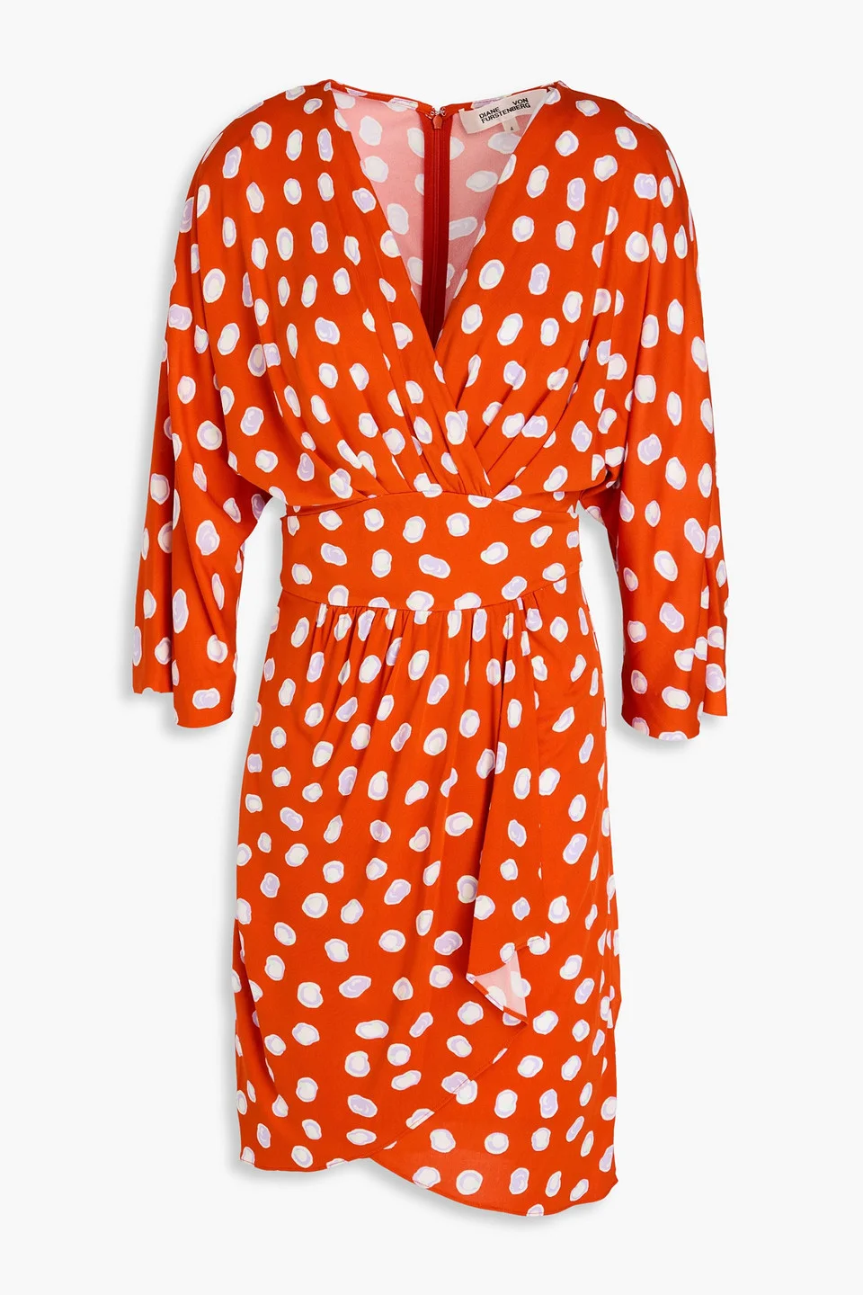 Dress printed jersey gathered wrap-effect pleated waist ties concealed hook and zip fastening at back mid-weight, stretchy fabric dry clean imported 100% Viscose Product Code 1647597347927331