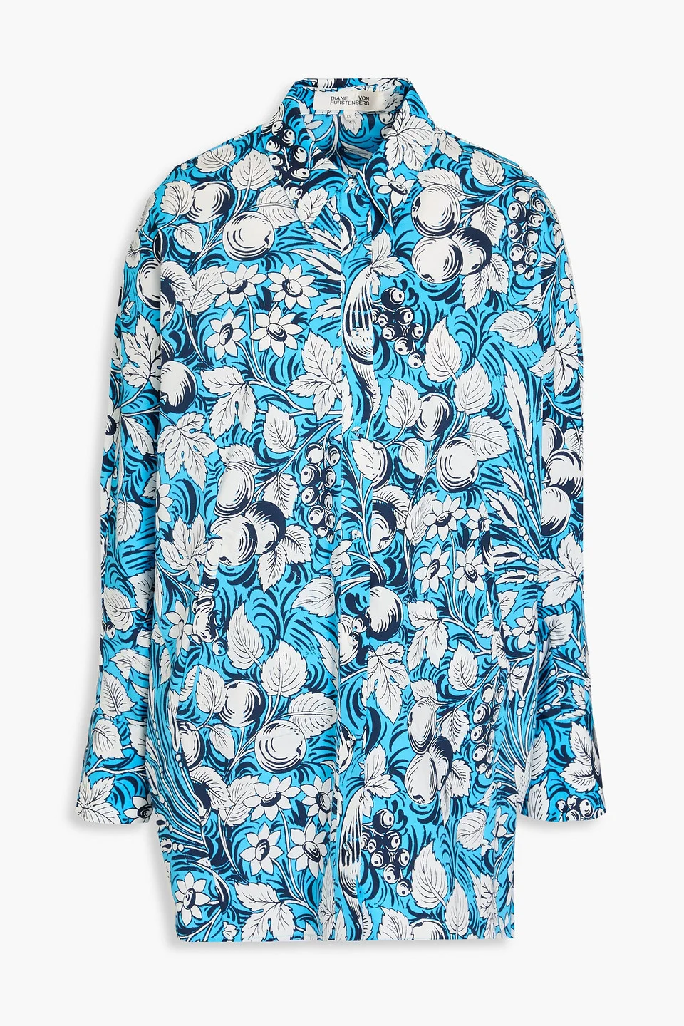 Shirt floral-print poplin cotton-blend buttoned cuffs side slits button fastenings through front mid-weight, slightly stretchy fabric dry clean imported 98% Cotton 2% Spandex Product Code 1647597358864644