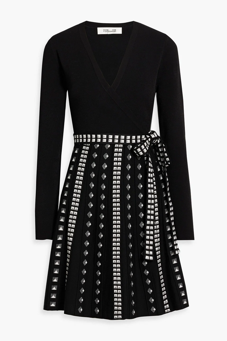 Dress jacquard-knit wrap-effect waist ties slips on mid-weight knit dry clean imported 46% Viscose 16% Acrylic 15% Wool 13% Polyester 10% Nylon Product Code 46376663162918916