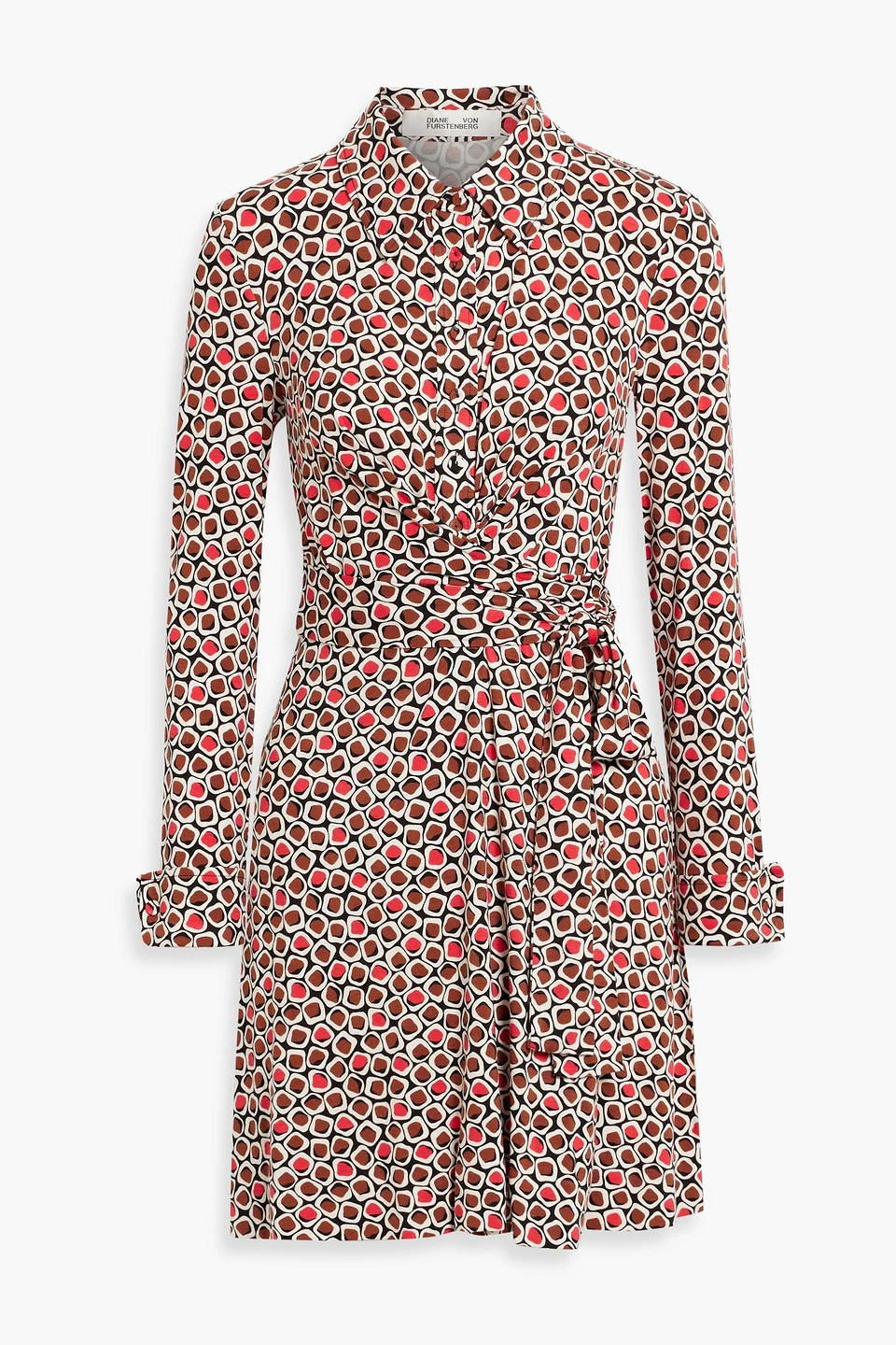 Wrap dress printed stretch-jersey folded cuffs button fastenings along front ties at waist mid-weight, stretchy fabric dry clean imported 95% Viscose 5% Spandex Product Code 46376663162892846