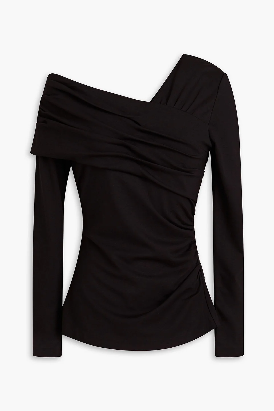 One-shoulder top jersey ruched concealed zip fastening along side slightly stretchy fabric mid-weight fabric dry clean imported 87% Viscose 10% Nylon 3% Elastane Product Code 1647597333676852