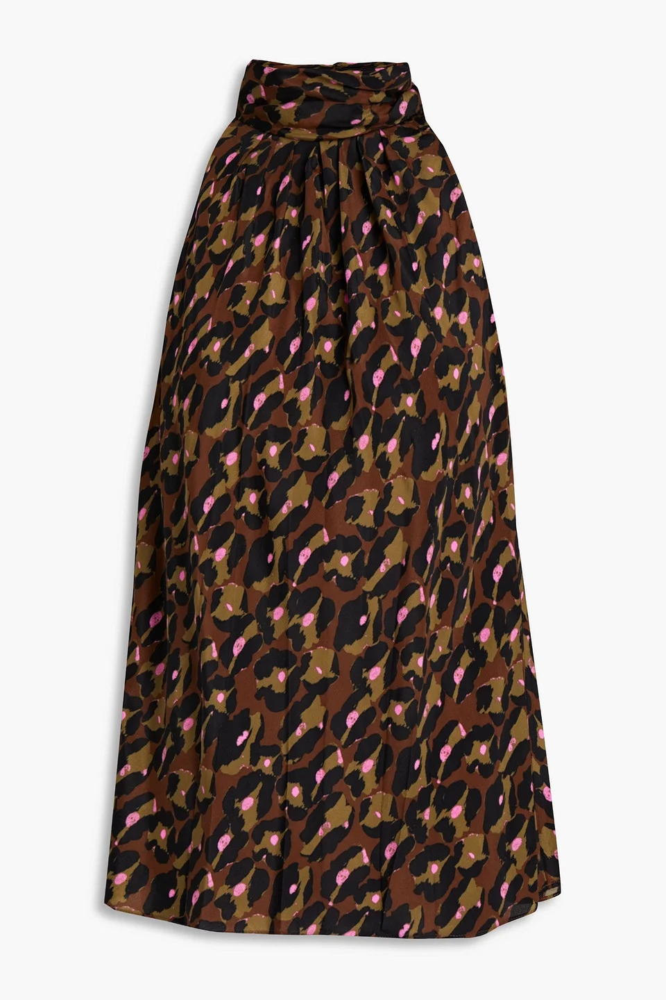 Dove pleated leopard-print crepe de chine top