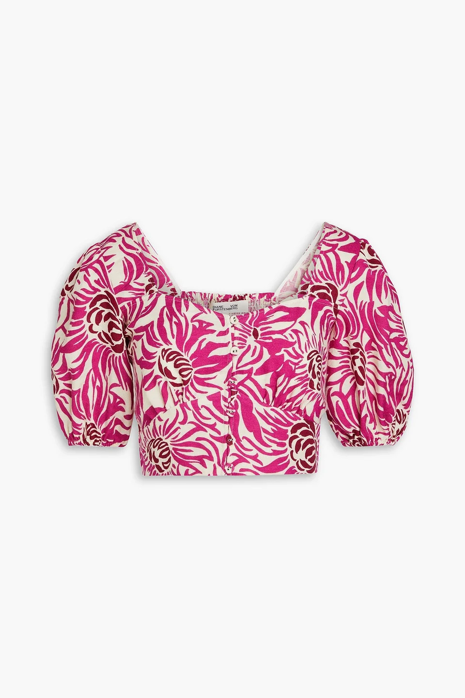 Top floral-print canvas shirred trims cropped elasticated cuffs button fastenings through front mid-weight, non-stretchy fabric dry clean imported If you love this print, style as a set with the coordinating skirt 80% Viscose 20% Polyamide Product Code 1647597337332897